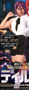 ちなみに敵の悪魔たちはいったい何の悪魔だったのかは分かりませんが、女子高生のような恰好にフルフェイスのマスクという異様な出で立ちながらも完全に女性の姿をしており、またたくまに押し倒されてパンツを脱がされ、ディルドーを挿入されてしまう…と思いきや指を挿入されて激しい手マンを食らってしまいます。